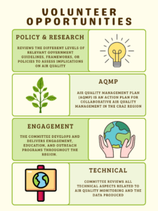 As a member of CRAZ you will support air quality monitoring in the airshed as well as the provision of air quality information of interest to a diverse group of stakeholders in the region.